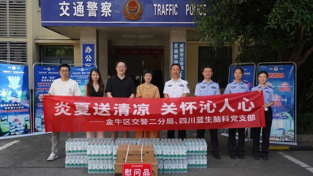 8月11日—15日,四川藍生腦科醫(yī)院黨支部組織開展 “盛夏送清涼” 高溫慰問系列活動,聚焦“高溫下的堅守者”。我院黨支部陳瑩書記帶隊走訪茶店子城管、派出所、成都環(huán)衛(wèi)、成都燃氣、成都消防、交警支隊等單位,為炎熱夏季里依然堅守一線的工作者送去防暑物資和健康關(guān)懷,將黨組織的關(guān)懷從"物質(zhì)幫扶"延伸至"健康守護"。這種"靶向式"服務,正是醫(yī)院黨支部踐行"我為群眾辦實事"的生動縮影。
