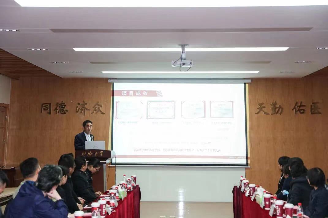 蔡劍飛院長為大會致辭。他介紹,近幾年來,醫(yī)院明確了學(xué)科建設(shè)方向,按照“155”學(xué)科發(fā)展計劃,打造以腦血管疾病為特色的優(yōu)勢學(xué)科群。堅持“規(guī)范、高效、和諧、可持續(xù)”發(fā)展理念,深入開展優(yōu)質(zhì)服務(wù)年和醫(yī)院管理年活動,不斷夯實基礎(chǔ)強內(nèi)涵。他指出,醫(yī)療作為特殊行業(yè),患者與員工的滿意,對外決定了醫(yī)患關(guān)系的和諧,對內(nèi)決定了行風(fēng)建設(shè)水平。醫(yī)院持續(xù)開展患者、員工兩大滿意工程,以聘請社會行風(fēng)監(jiān)督員的形式,傾聽社會聲音,接受社會監(jiān)督,促進(jìn)醫(yī)院規(guī)范、和諧發(fā)展。 六年多來,在區(qū)、鎮(zhèn)黨委政府和衛(wèi)生主管部門支持下,醫(yī)院先后發(fā)起和承接了多個政府支持公益項目。“健康小屋”“健康桃浦1+1”“健康桃浦醫(yī)籃子”等公益項目成為醫(yī)院創(chuàng)新公益服務(wù)的品牌。隨著醫(yī)院互聯(lián)網(wǎng)醫(yī)院的運營和信息技術(shù)的進(jìn)步,將為下一步創(chuàng)建“智慧健康小屋”,實現(xiàn)互聯(lián)網(wǎng)+健康,推動“醫(yī)養(yǎng)結(jié)合聯(lián)合體”打下基礎(chǔ)。醫(yī)院將積極發(fā)揮同濟(jì)大學(xué)醫(yī)教研方面的優(yōu)勢,為區(qū)域內(nèi)的健康事業(yè)作出新貢獻(xiàn)。