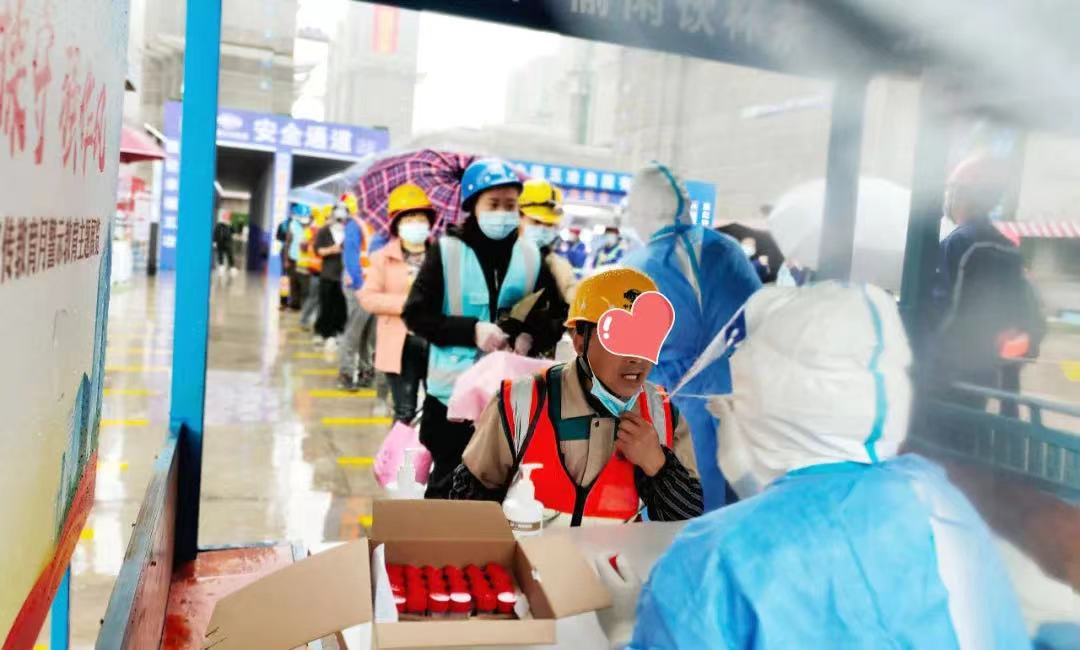 當(dāng)天,陳穎輾轉(zhuǎn)兩個采樣點,采集了1000余例樣本,手酸、腰痛......一個字“累”,但她覺得很值得,很有意義。當(dāng)轉(zhuǎn)場到工地,一身“大白”裝的她從車上下來時,工人們驚喜地說“啊,醫(yī)生來了”。聽到這句話的一瞬間,陳穎感到責(zé)任感、使命感噴涌而出,“感受到工友們充分的信任與依賴。那一刻,就覺得所有的辛苦都值了。”