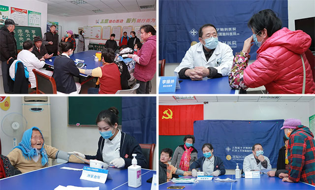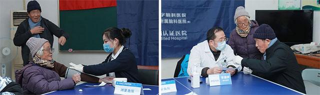 ▲ 藍(lán)十字醫(yī)療志愿者,為社區(qū)居民健康把脈